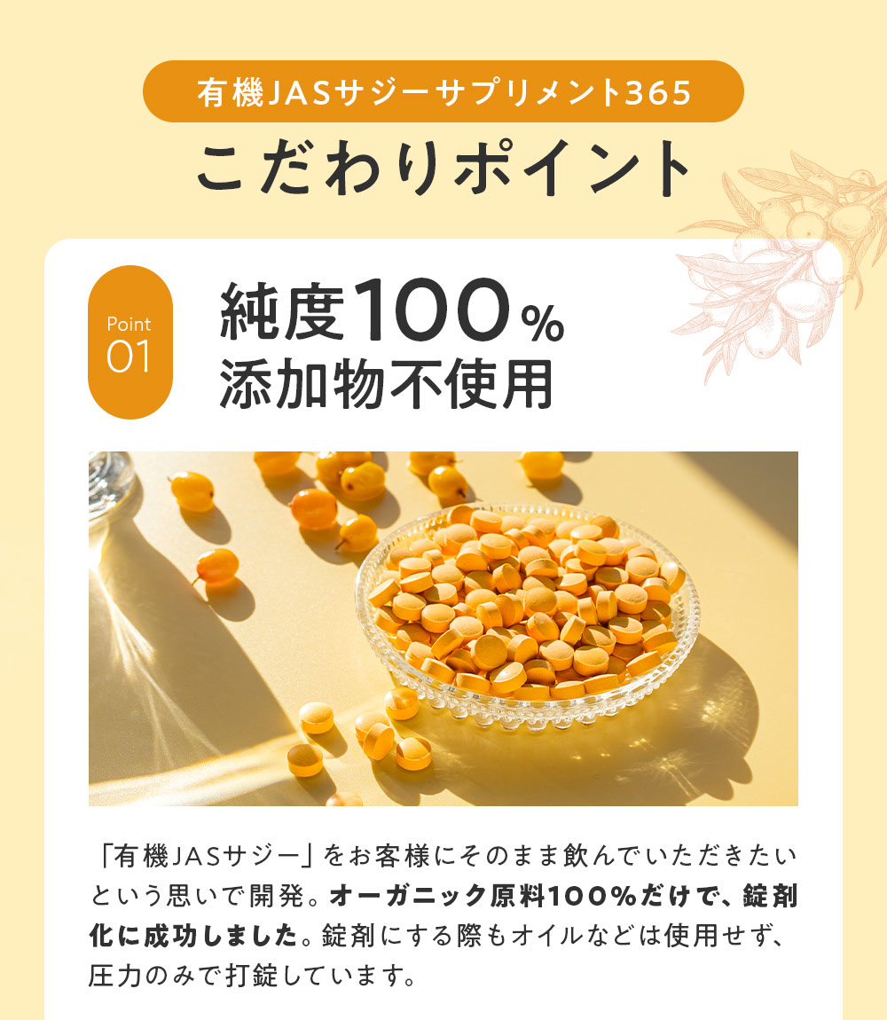 【定期購入】有機JASサジーサプリメント 120粒 3袋セット